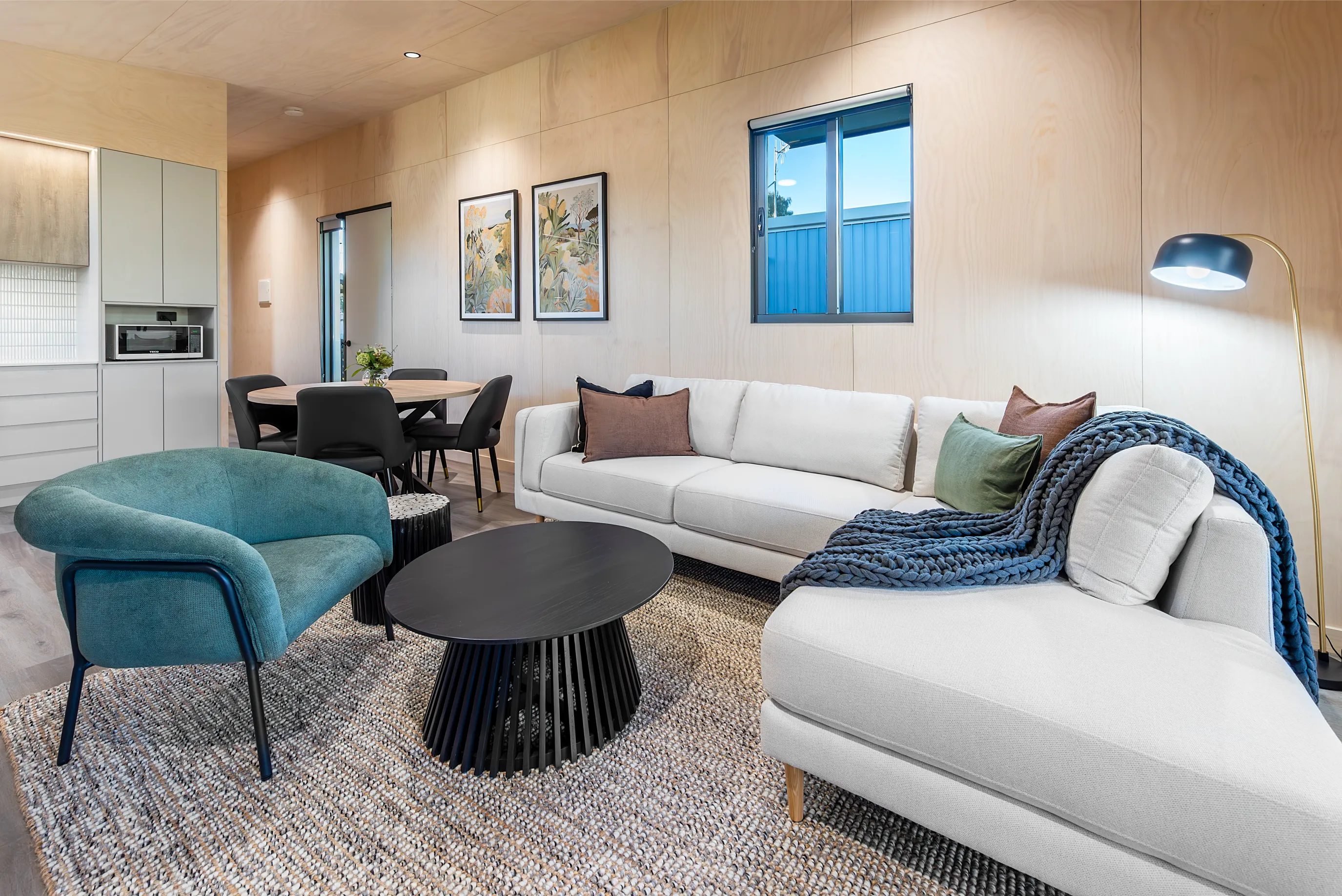 We partnered with ModnPods to deliver staff accommodation for an aged care client in regional Queensland — a project brief of three homes, including two one-bed dwellings and a three-bed family home.