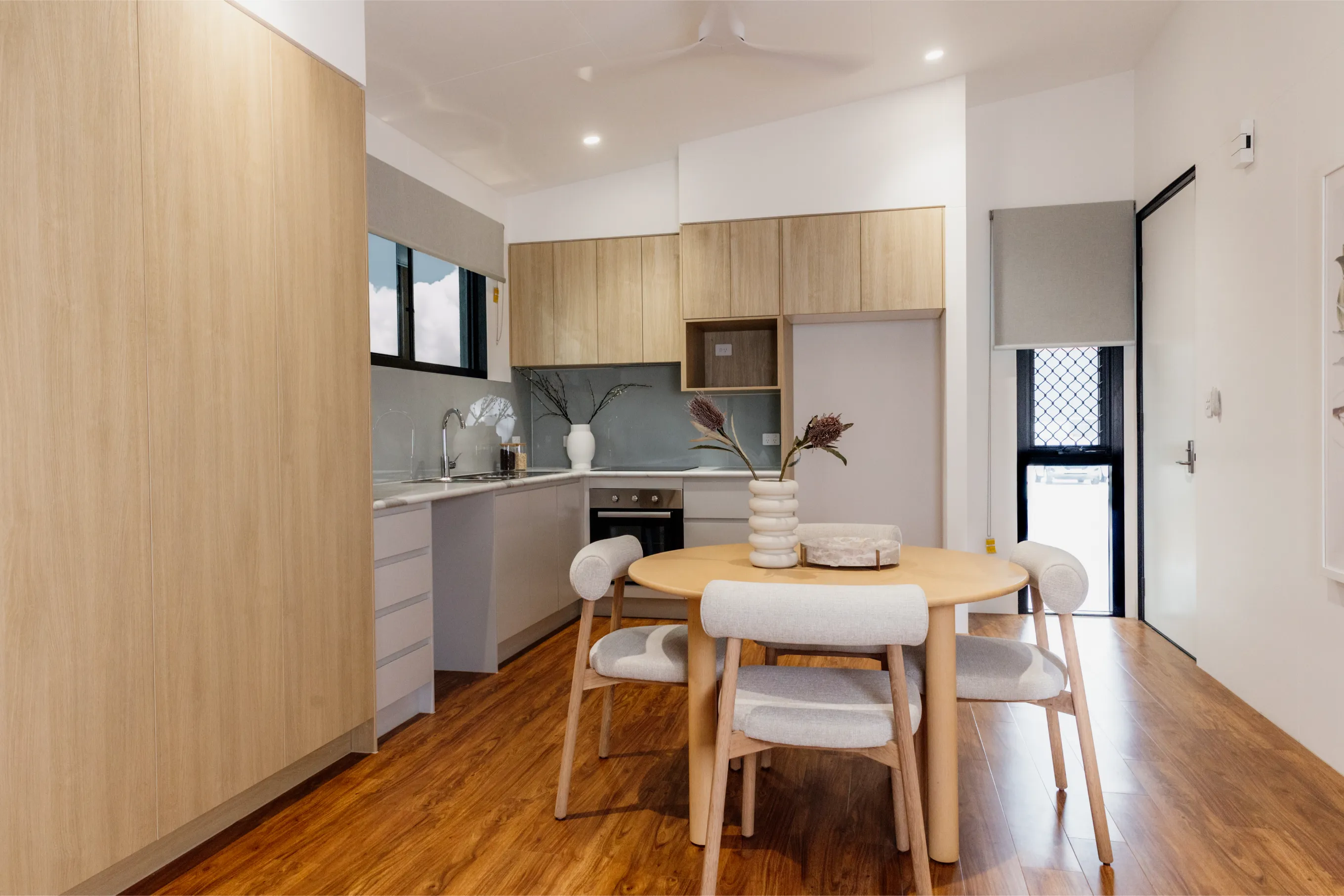 We partnered with ModnPods to deliver staff accommodation for an aged care client in regional Queensland — a project brief of three homes, including two one-bed dwellings and a three-bed family home.