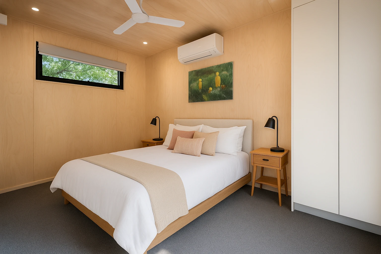 Each pod is manufactured in our 6,300m2 integrated manufacturing facility on the Gold Coast, where design, manufacturing, and finishing all happen under one roof. This includes building everything from internal walls, flooring, and cabinetry to pre-installed plumbing and electrical systems. By the time the pod arrives on-site, it’s 90–95% complete, allowing for rapid installation, reliable timelines, and repeatable outcomes at scale.
